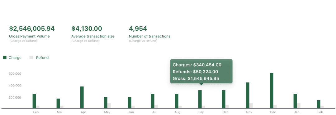 Get transaction level data through a single set of webhooks. View aggregate metrics across service providers through our dashboard.